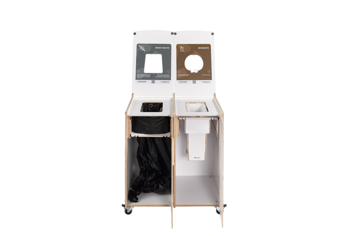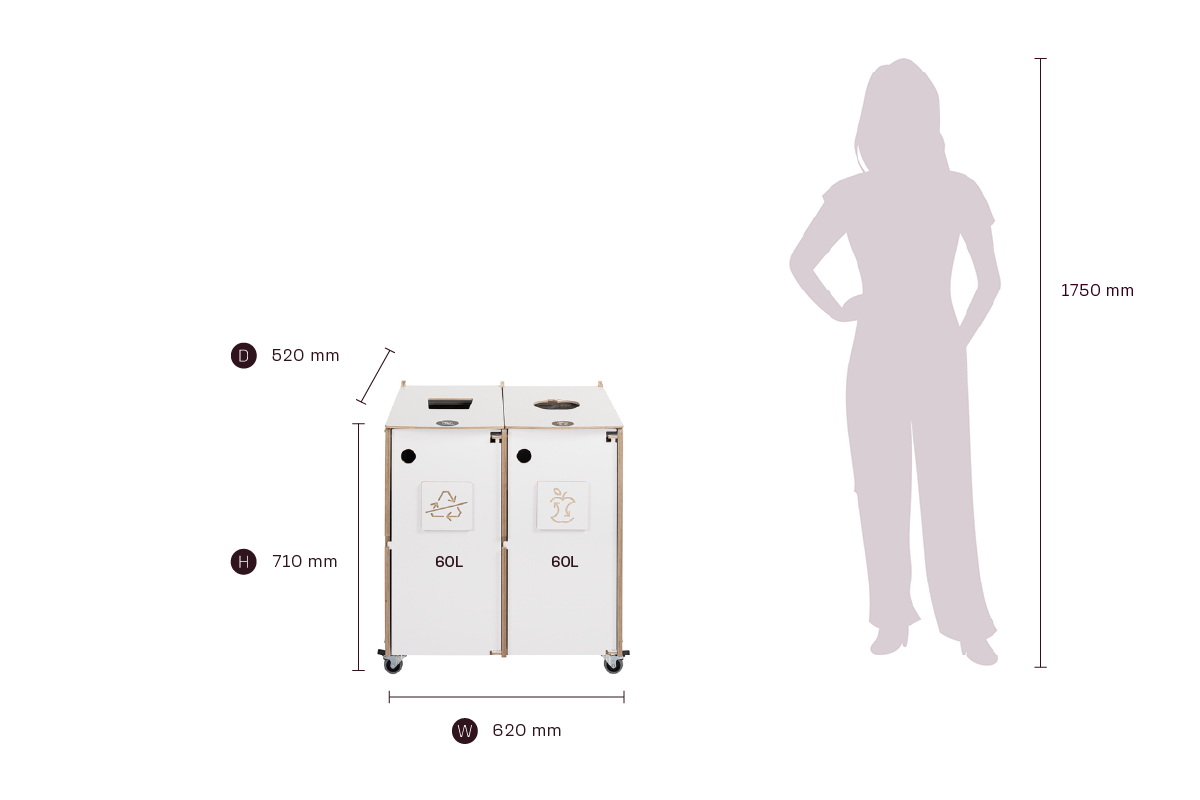 Selkeät visuaaliset ohjeet varmistavat oikean lajittelun, kun taas edestä avautuvat ovet ja lukittavat pyörät tekevät päivittäisestä käsittelystä ja huollosta helppoa ja tehokasta. Ihanteellinen ratkaisu toimistoihin, kouluihin ja julkisiin tiloihin, joissa arvostetaan muotoilua, mukautuvuutta ja kestävyyttä.