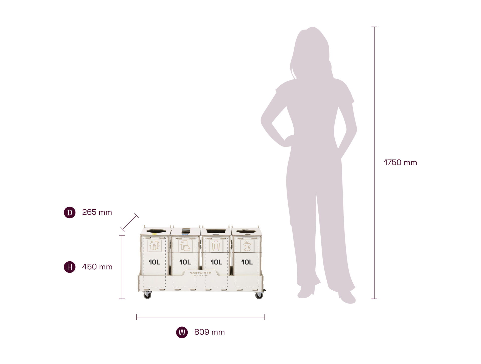 Recycling Bin Sorter on tyylikäs ja kompakti jätteiden lajitteluasema. Siinä on 1–5 erillistä lokeroa, jotka helpottavat ja tehostavat jätteiden lajittelua toimistoissa, kouluissa ja julkisissa tiloissa.