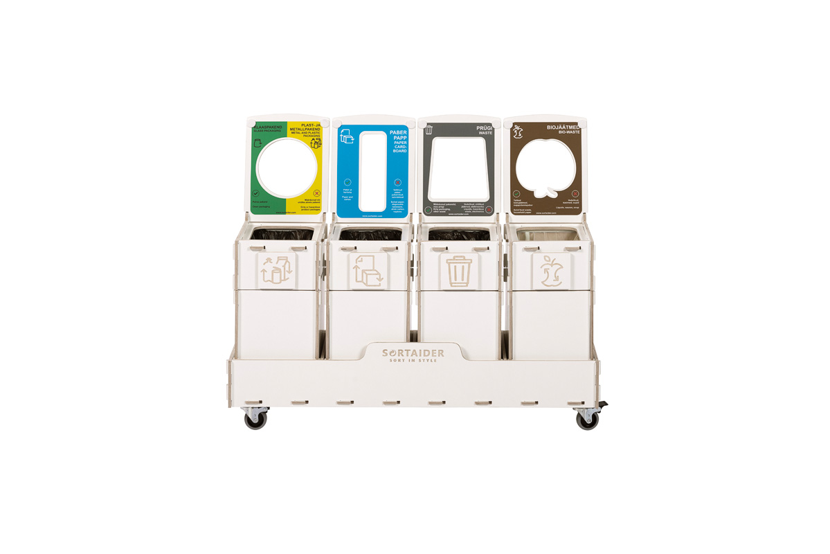 Lukittavilla pyörillä, selkeillä lajittelusymboleilla ja korkealaatuisilla vanerilaatikoilla varustettu laite yhdistää käytännöllisyyden ja pohjoismaisen inspiraation saaneen muotoilun. 13,8 kg painava Sortaider-tuote säästää noin 14,6 kg CO₂:ta, joten jokainen roskalaatikko on merkityksellinen askel kohti kestävää kehitystä.