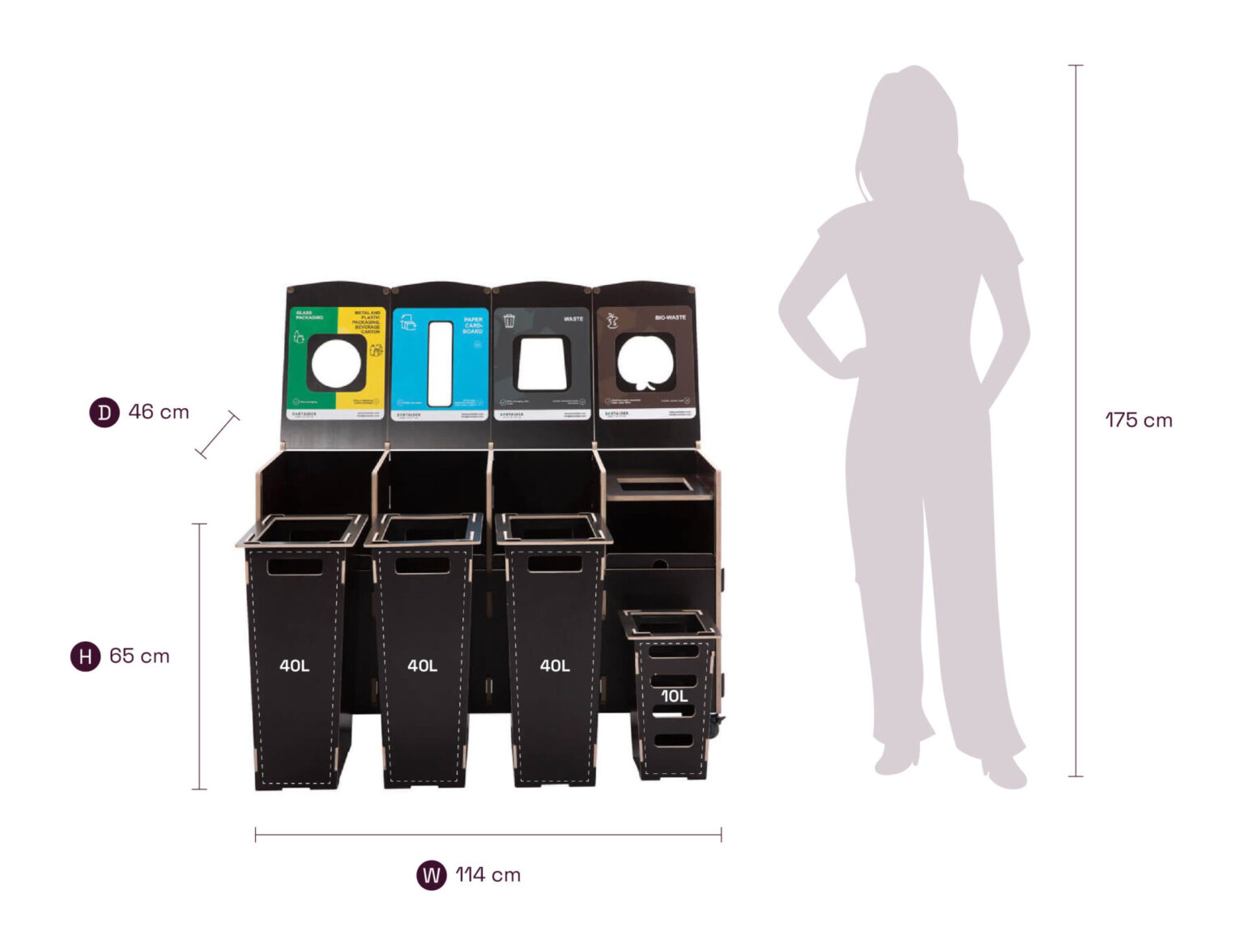 Bin capacity: 4 x 40 L
