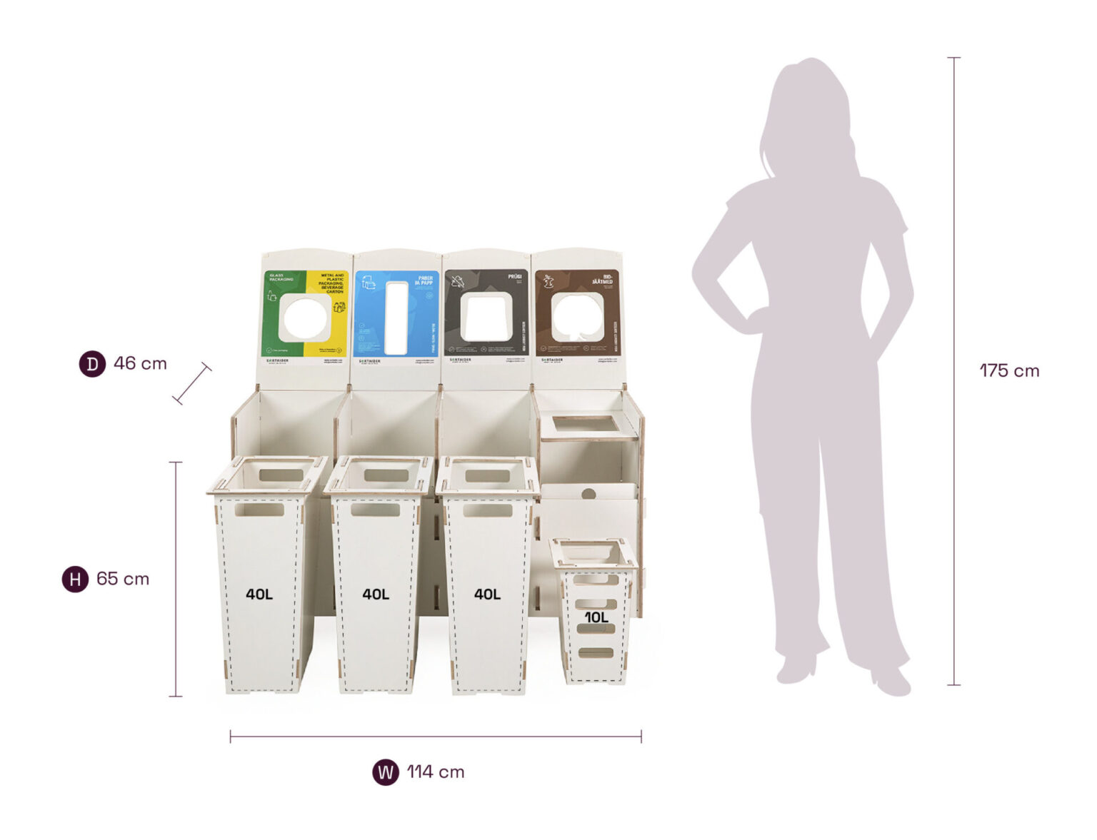Equipped with lockable wheels, clear sorting symbols, and high-quality plywood bins, it blends practicality with Nordic-inspired design. A 22 kg Sortaider product saves approximately 22,8 kg of CO₂, making every bin a meaningful step toward sustainability.