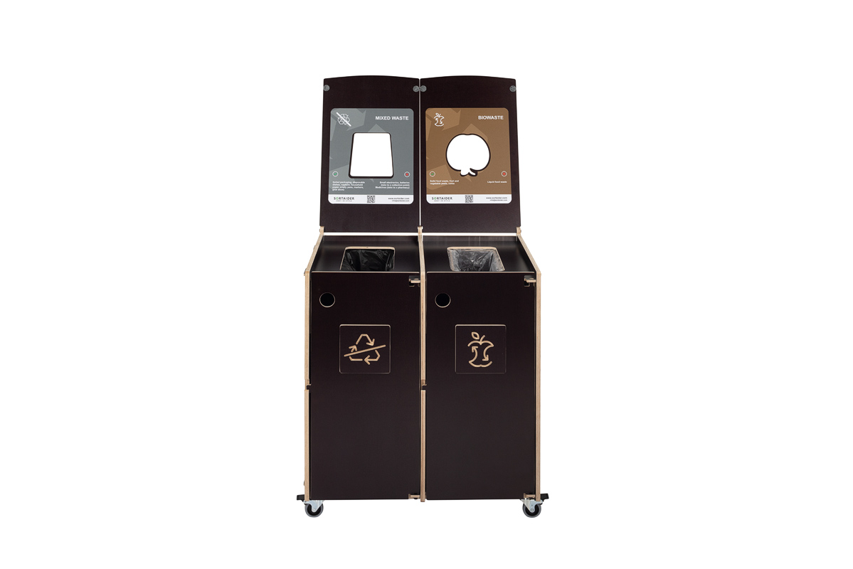 Selkeät visuaaliset ohjeet varmistavat oikean lajittelun, kun taas edestä avautuvat ovet ja lukittavat pyörät tekevät päivittäisestä käsittelystä ja huollosta helppoa ja tehokasta. Ihanteellinen ratkaisu toimistoihin, kouluihin ja julkisiin sisätiloihin, joissa arvostetaan muotoilua, mukautuvuutta ja kestävyyttä.