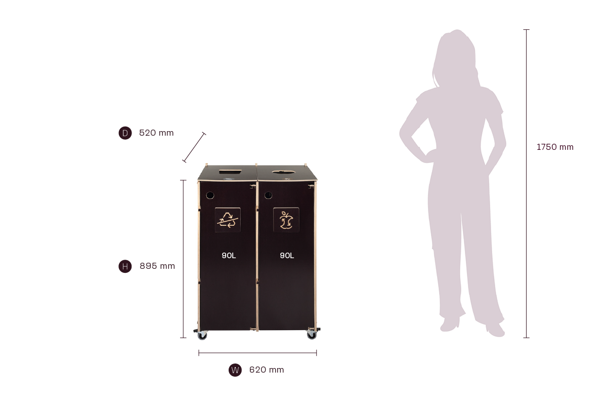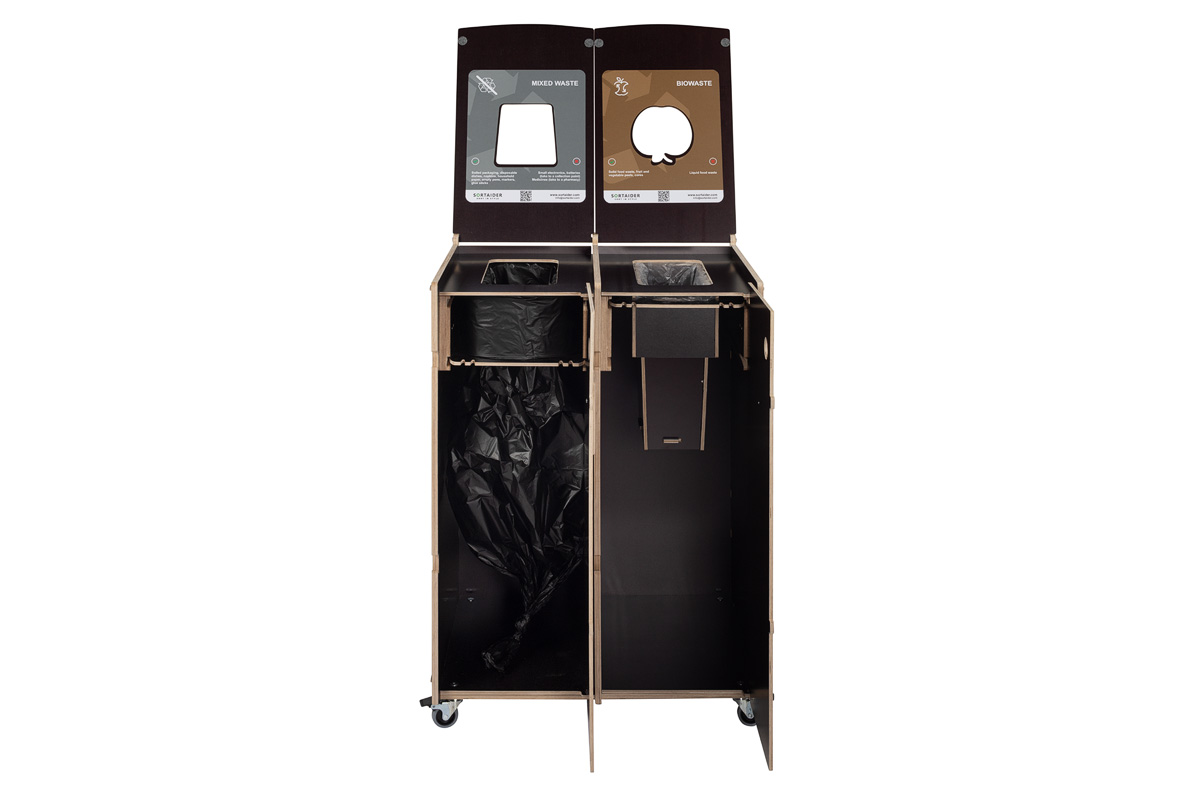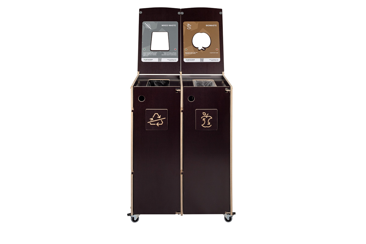 Selkeät visuaaliset ohjeet varmistavat oikean lajittelun, kun taas edestä avautuvat ovet ja lukittavat pyörät tekevät päivittäisestä käsittelystä ja huollosta helppoa ja tehokasta. Ihanteellinen ratkaisu toimistoihin, kouluihin ja julkisiin sisätiloihin, joissa arvostetaan muotoilua, mukautuvuutta ja kestävyyttä.