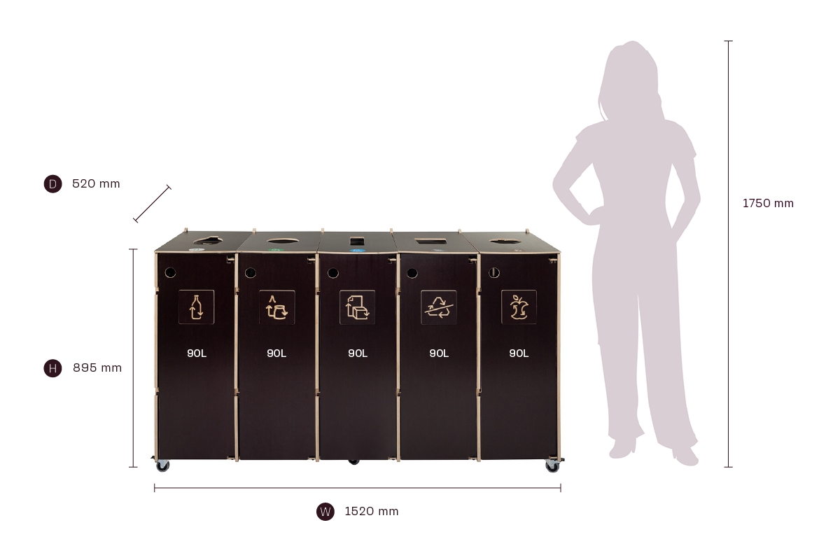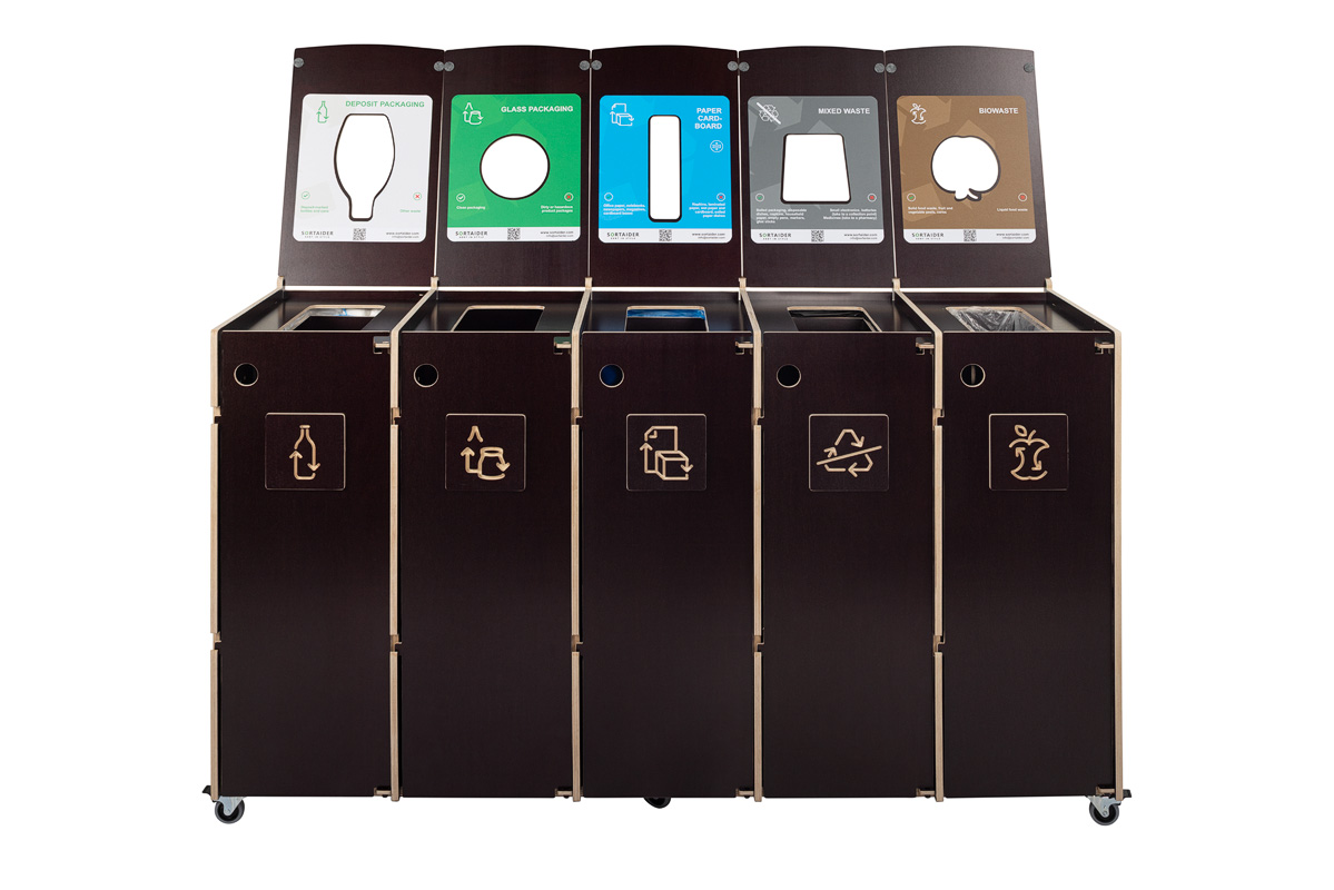 Kompaktin kokonsa ja tehokkaan kapasiteettinsa ansiosta Sorta yhdistää kestävät vanerimateriaalit ja toimivan muotoilun, mikä tekee siitä luotettavan ratkaisun järjestelmälliseen ja vastuulliseen jätehuoltoon ammattimaisissa ympäristöissä.