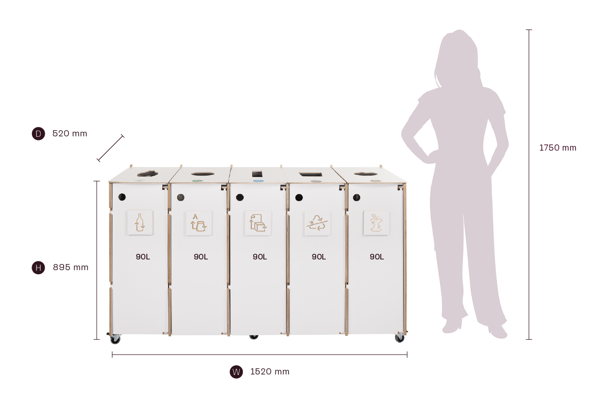 Bin capacity: 5 x 90 L