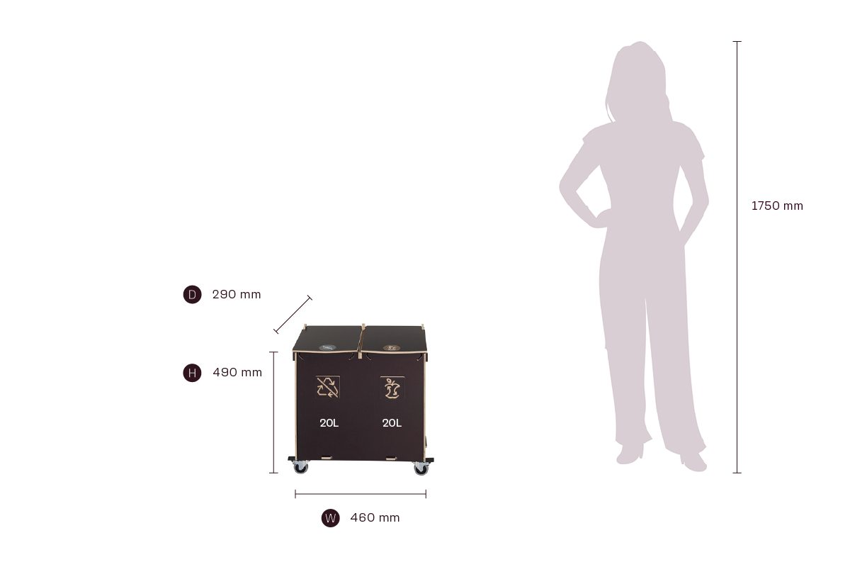 Kompaktin kokonsa ja tehokkaan kapasiteettinsa ansiosta Sorta yhdistää kestävät vanerimateriaalit ja toimivan muotoilun, mikä tekee siitä luotettavan ratkaisun järjestelmälliseen ja vastuulliseen jätehuoltoon ammattimaisissa ympäristöissä.