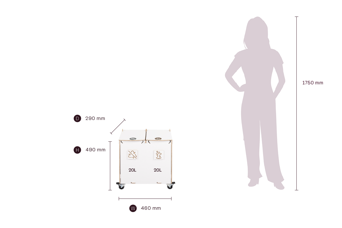 Kompaktin kokonsa ja tehokkaan kapasiteettinsa ansiosta Sorta yhdistää kestävät vanerimateriaalit ja toimivan muotoilun, mikä tekee siitä luotettavan ratkaisun järjestelmälliseen ja vastuulliseen jätehuoltoon ammattimaisissa ympäristöissä.