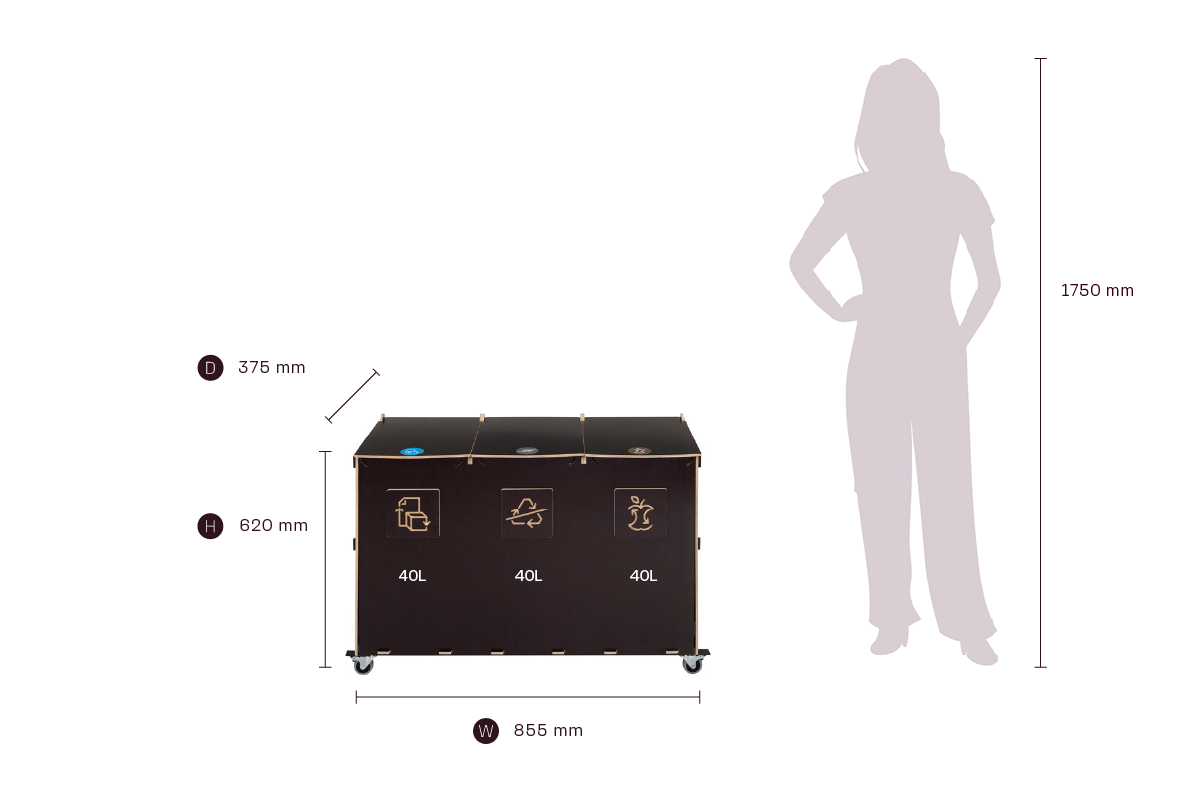 Kompaktin kokonsa ja tehokkaan kapasiteettinsa ansiosta Sorta yhdistää kestävät vanerimateriaalit ja toimivan muotoilun, mikä tekee siitä luotettavan ratkaisun järjestelmälliseen ja vastuulliseen jätehuoltoon ammattimaisissa ympäristöissä.