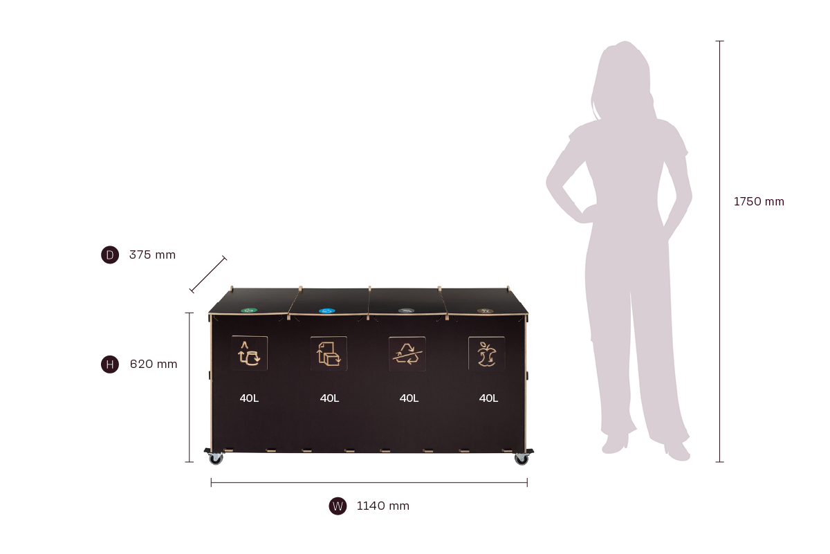 Kompaktin kokonsa ja tehokkaan kapasiteettinsa ansiosta Sorta yhdistää kestävät vanerimateriaalit ja toimivan muotoilun, mikä tekee siitä luotettavan ratkaisun järjestelmälliseen ja vastuulliseen jätehuoltoon ammattimaisissa ympäristöissä.