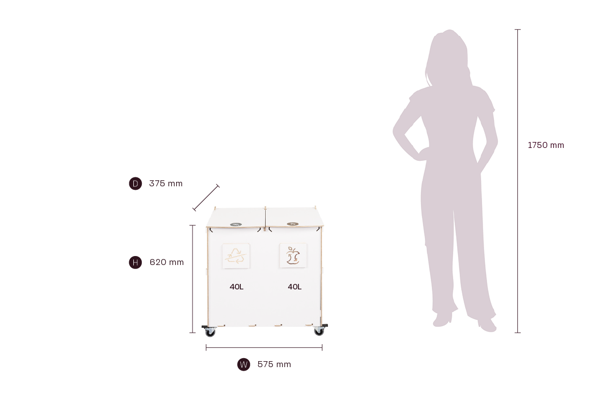 Kompaktin kokonsa ja tehokkaan kapasiteettinsa ansiosta Sorta yhdistää kestävät vanerimateriaalit ja toimivan muotoilun, mikä tekee siitä luotettavan ratkaisun järjestelmälliseen ja vastuulliseen jätehuoltoon ammattimaisissa ympäristöissä.