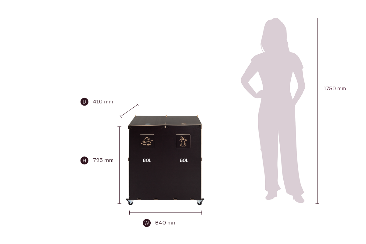 Kompaktin kokonsa ja tehokkaan kapasiteettinsa ansiosta Sorta yhdistää kestävät vanerimateriaalit ja toimivan muotoilun, mikä tekee siitä luotettavan ratkaisun järjestelmälliseen ja vastuulliseen jätehuoltoon ammattimaisissa ympäristöissä.