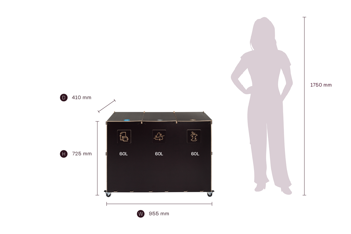 Kompaktin kokonsa ja tehokkaan kapasiteettinsa ansiosta Sorta yhdistää kestävät vanerimateriaalit ja toimivan muotoilun, mikä tekee siitä luotettavan ratkaisun järjestelmälliseen ja vastuulliseen jätehuoltoon ammattimaisissa ympäristöissä.