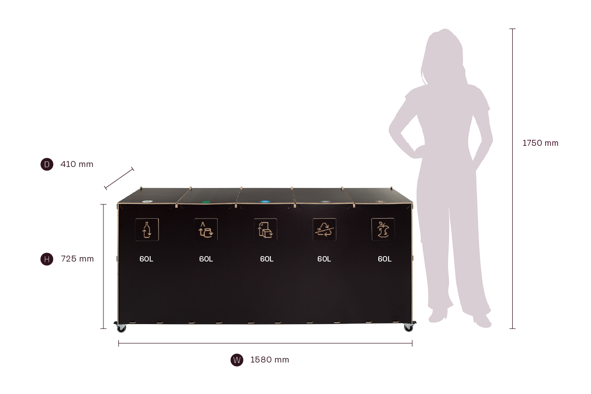 Kompaktin kokonsa ja tehokkaan kapasiteettinsa ansiosta Sorta yhdistää kestävät vanerimateriaalit ja toimivan muotoilun, mikä tekee siitä luotettavan ratkaisun järjestelmälliseen ja vastuulliseen jätehuoltoon ammattimaisissa ympäristöissä.