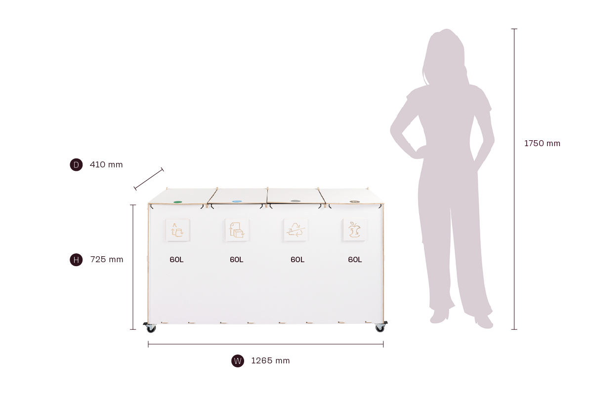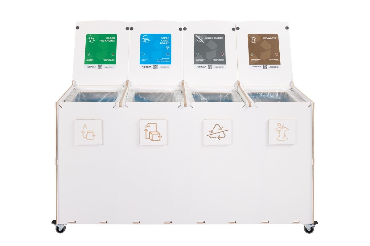 Kompaktin kokonsa ja tehokkaan kapasiteettinsa ansiosta Sorta yhdistää kestävät vanerimateriaalit ja toimivan muotoilun, mikä tekee siitä luotettavan ratkaisun järjestelmälliseen ja vastuulliseen jätehuoltoon ammattimaisissa ympäristöissä.
