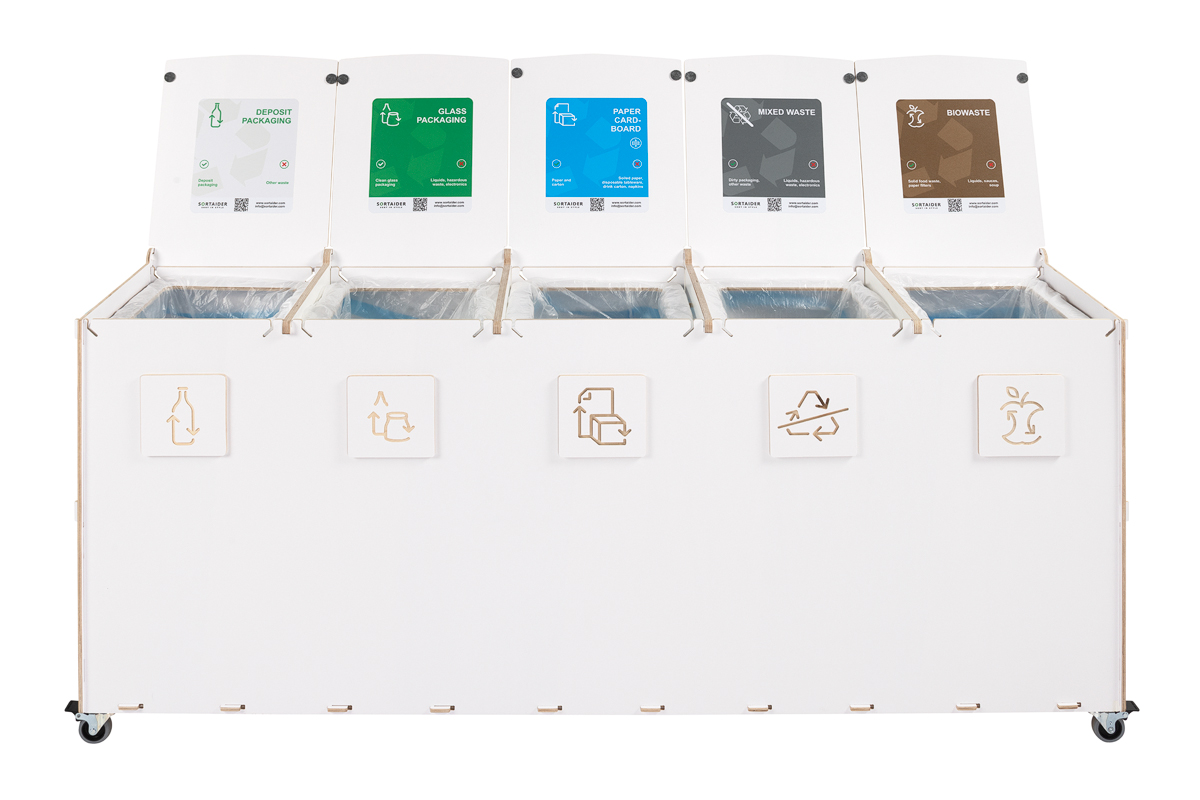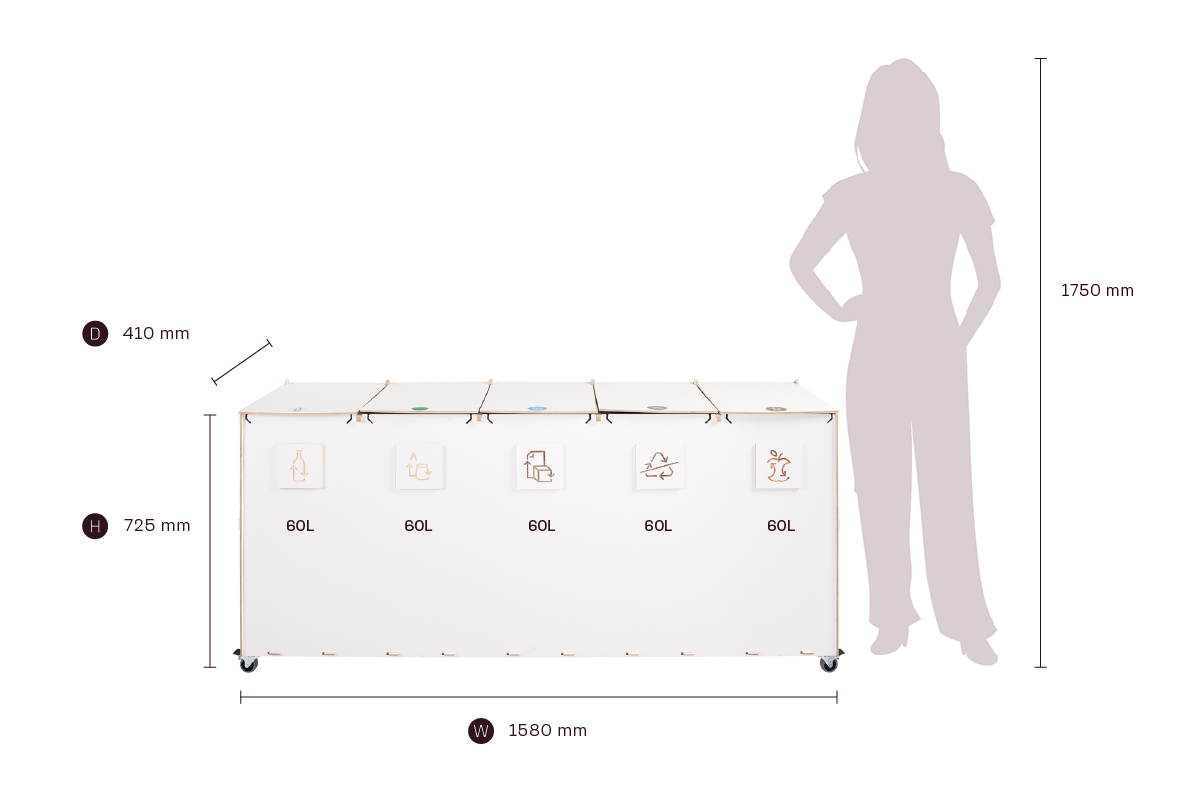 Kompaktin kokonsa ja tehokkaan kapasiteettinsa ansiosta Sorta yhdistää kestävät vanerimateriaalit ja toimivan muotoilun, mikä tekee siitä luotettavan ratkaisun järjestelmälliseen ja vastuulliseen jätehuoltoon ammattimaisissa ympäristöissä.