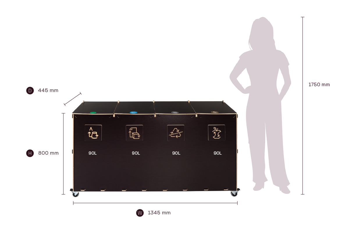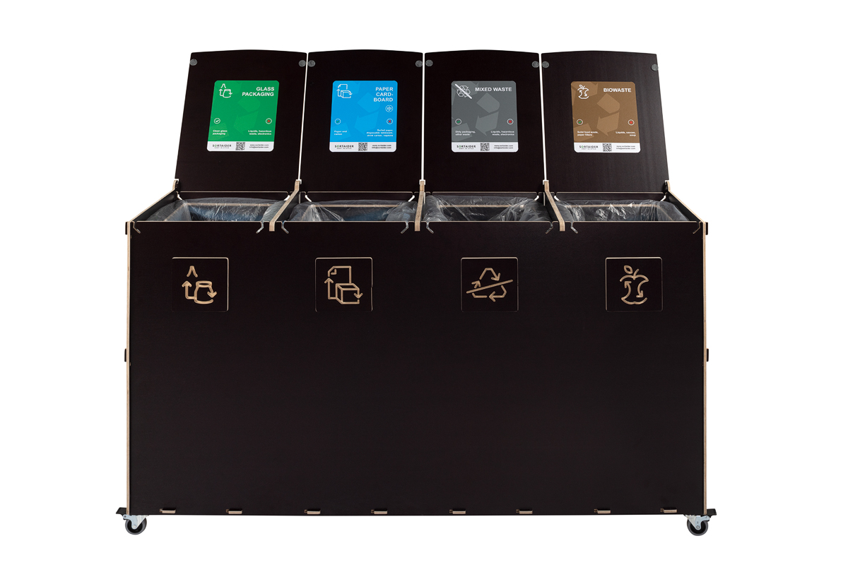 Kompaktin kokonsa ja tehokkaan kapasiteettinsa ansiosta Sorta yhdistää kestävät vanerimateriaalit ja toimivan muotoilun, mikä tekee siitä luotettavan ratkaisun järjestäytyneeseen ja vastuulliseen jätehuoltoon ammattimaisissa ympäristöissä.