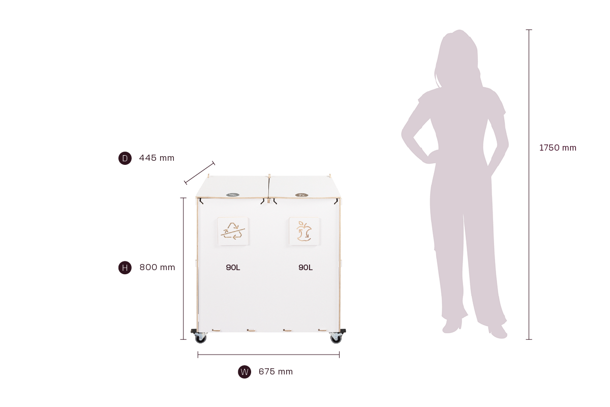 Kompaktin kokonsa ja tehokkaan kapasiteettinsa ansiosta Sorta yhdistää kestävät vanerimateriaalit ja toimivan muotoilun, mikä tekee siitä luotettavan ratkaisun järjestelmälliseen ja vastuulliseen jätehuoltoon ammattimaisissa ympäristöissä.