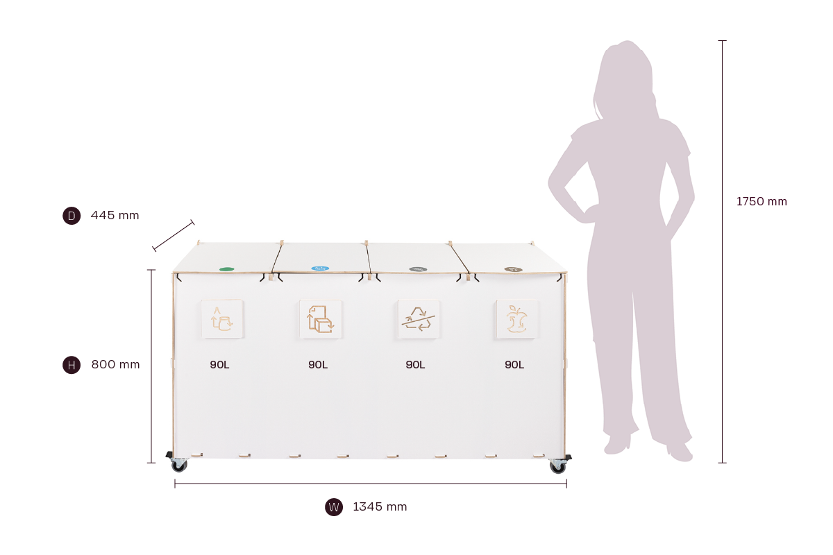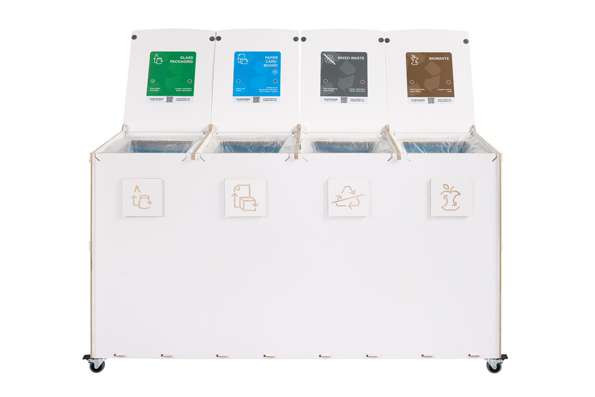 Kompaktin kokonsa ja tehokkaan kapasiteettinsa ansiosta Sorta yhdistää kestävät vanerimateriaalit ja toimivan muotoilun, mikä tekee siitä luotettavan ratkaisun järjestelmälliseen ja vastuulliseen jätehuoltoon ammattimaisissa ympäristöissä.
