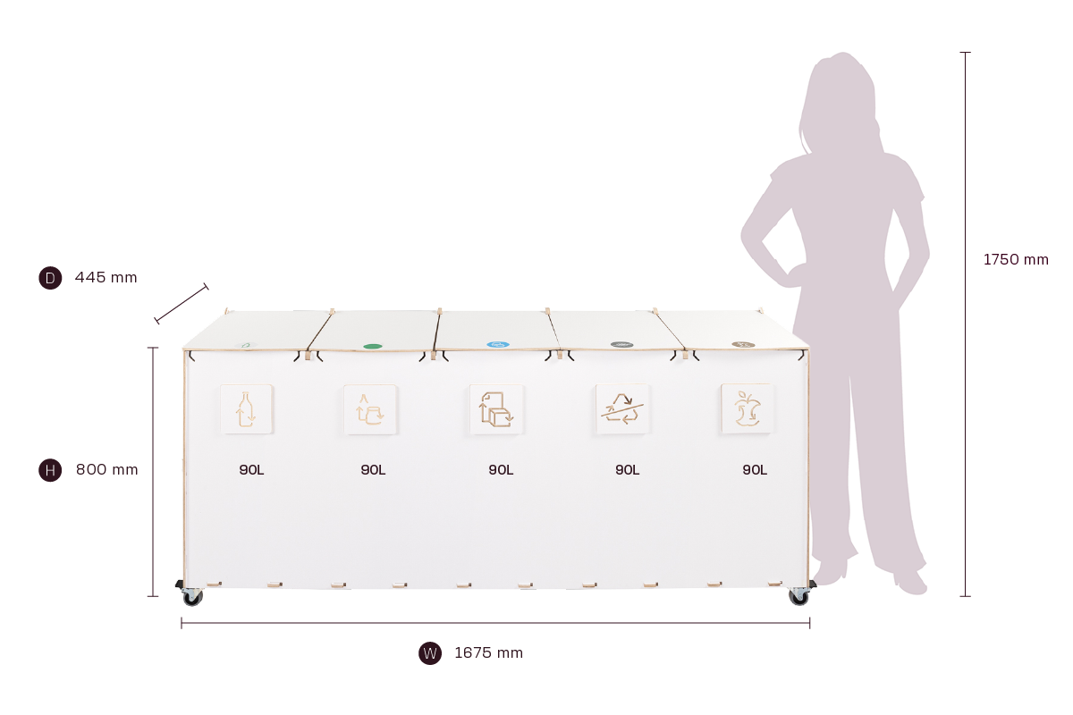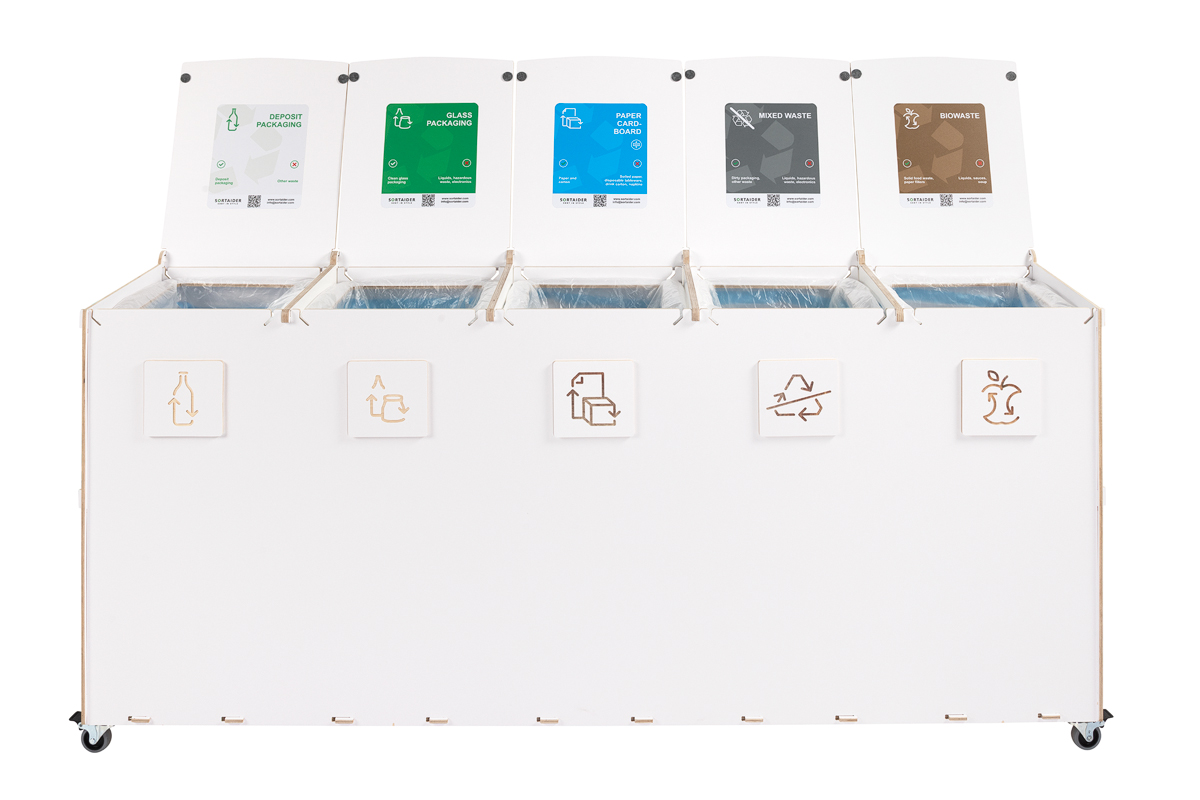 Kompaktin kokonsa ja tehokkaan kapasiteettinsa ansiosta Sorta yhdistää kestävät vanerimateriaalit ja toimivan muotoilun, mikä tekee siitä luotettavan ratkaisun järjestelmälliseen ja vastuulliseen jätehuoltoon ammattimaisissa ympäristöissä.