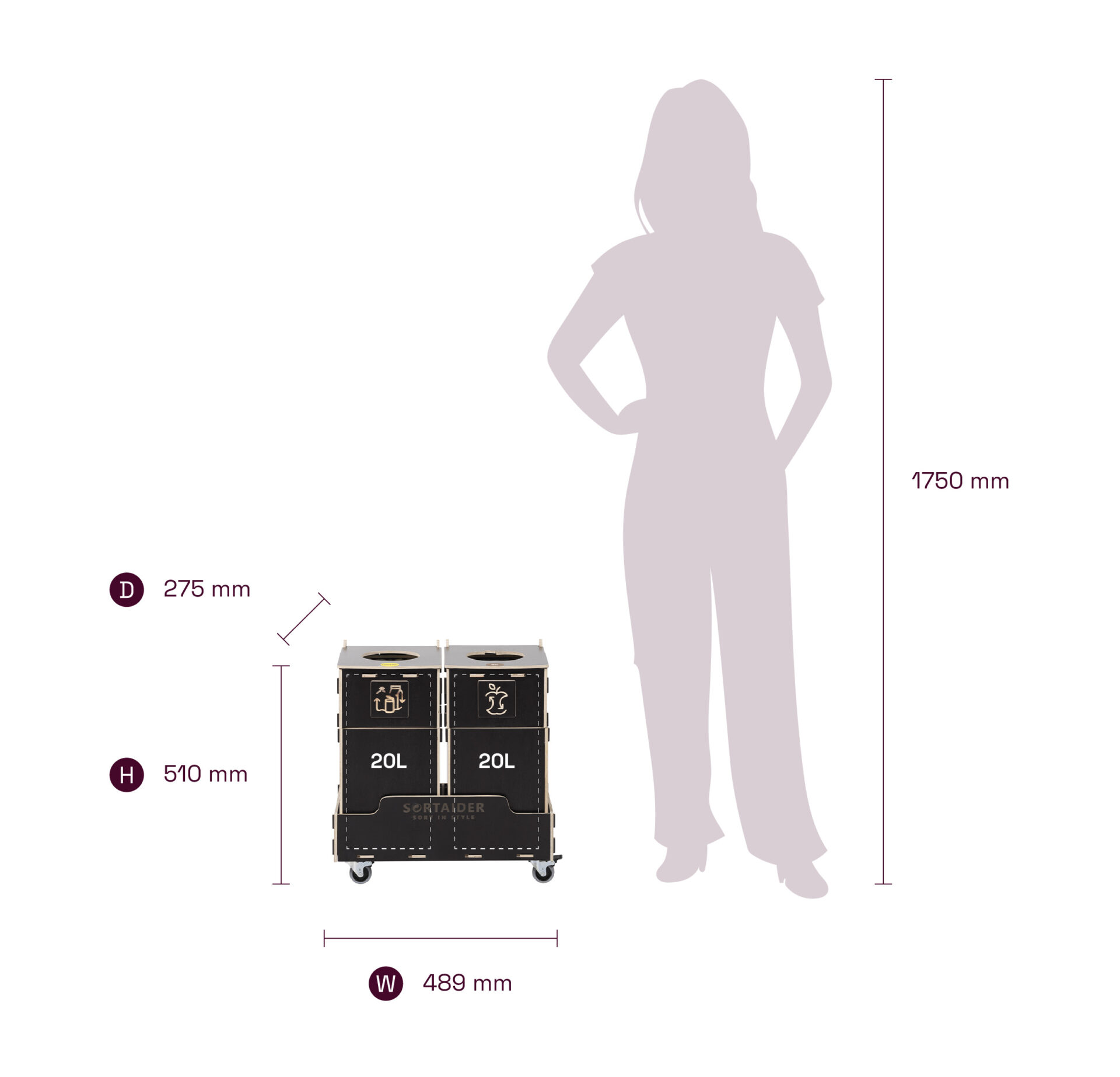 Lukittavilla pyörillä, selkeillä lajittelusymboleilla ja korkealaatuisilla vanerilaatikoilla varustettu laite yhdistää käytännöllisyyden ja pohjoismaisen inspiraation saaneen muotoilun. 9,5 kg:n painoinen Sortaider-tuote säästää noin 10,3 kg CO₂:ta, joten jokainen roskakori on merkityksellinen askel kohti kestävää kehitystä.