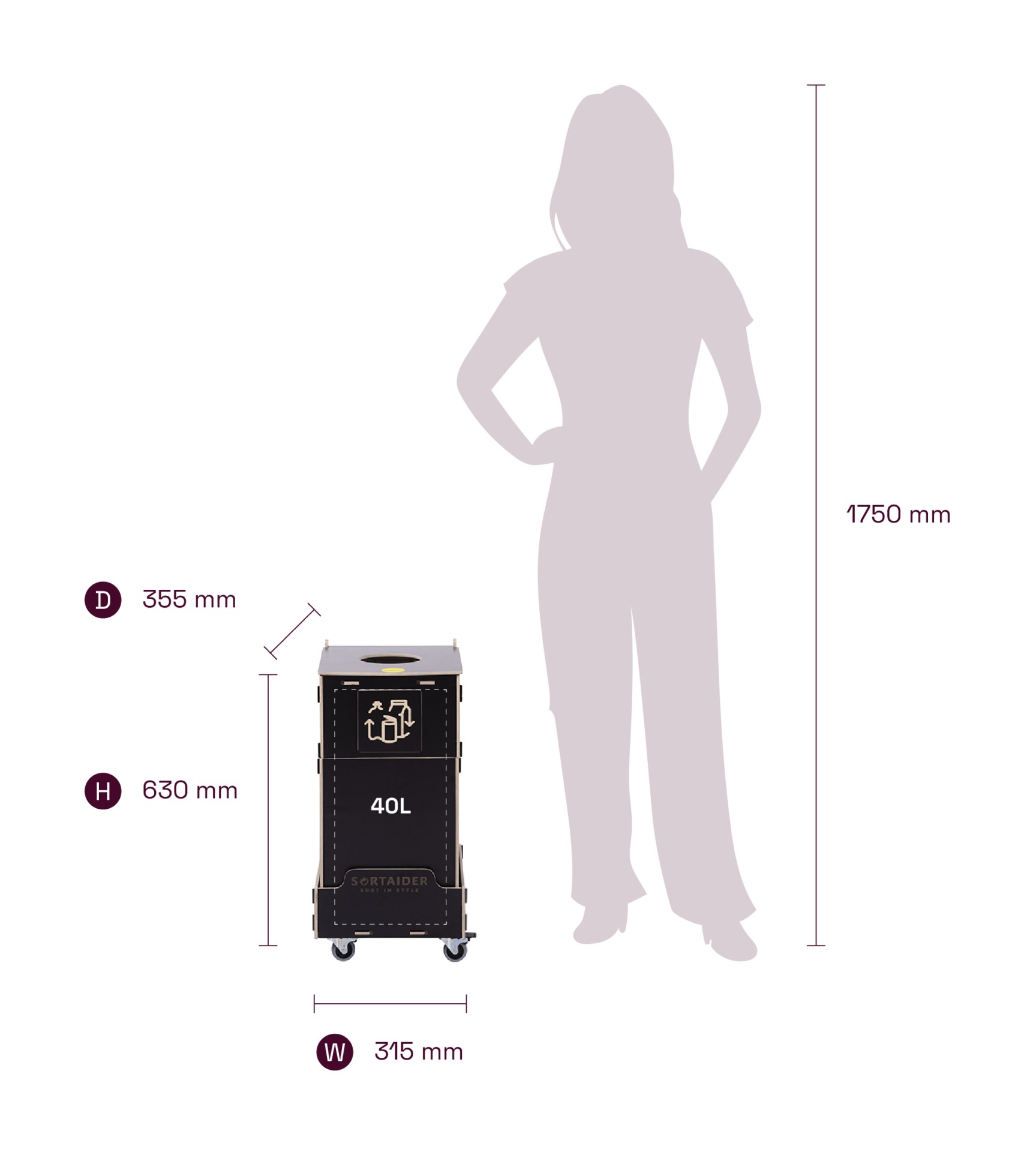 Lukittavilla pyörillä, selkeillä lajittelusymboleilla ja korkealaatuisilla vanerilaatikoilla varustettu laite yhdistää käytännöllisyyden ja pohjoismaisen inspiraation saaneen muotoilun. 8,5 kg:n painoinen Sortaider-tuote säästää noin 9,3 kg CO₂:ta, joten jokainen roskakori on merkityksellinen askel kohti kestävää kehitystä.