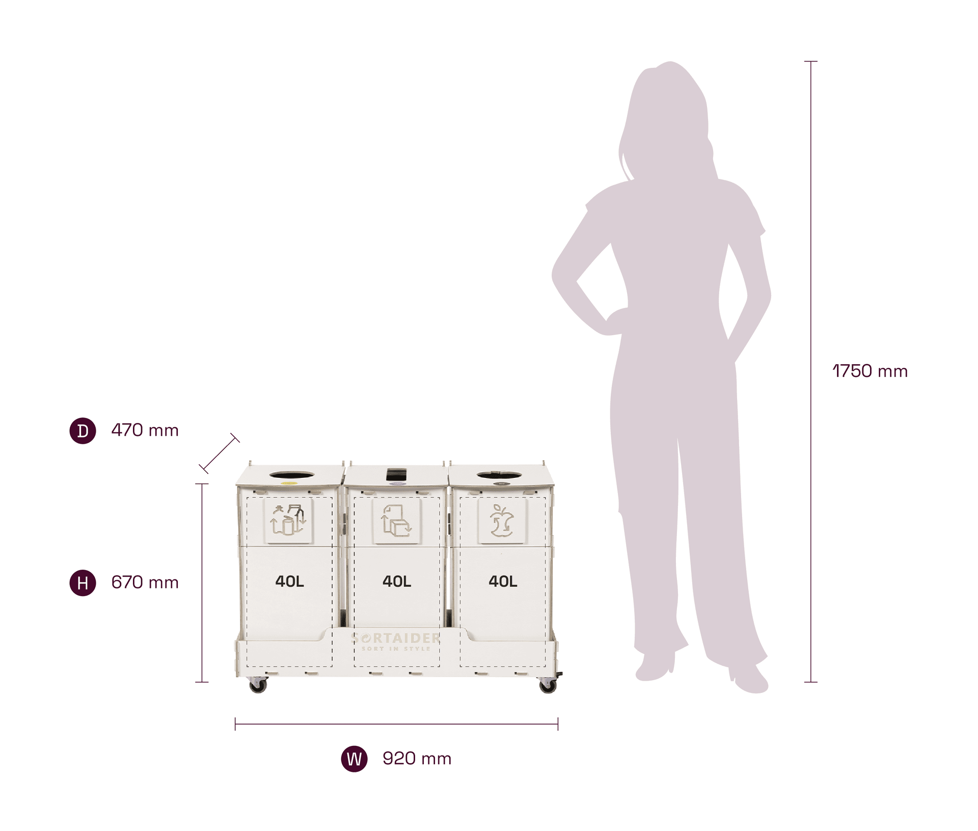 Lukittavilla pyörillä, selkeillä lajittelusymboleilla ja korkealaatuisilla vanerilaatikoilla varustettu laite yhdistää käytännöllisyyden ja pohjoismaisen inspiraation saaneen muotoilun. 23,2 kg painava Sortaider-tuote säästää noin 24 kg CO₂:ta, joten jokainen laite on merkityksellinen askel kohti kestävää kehitystä.