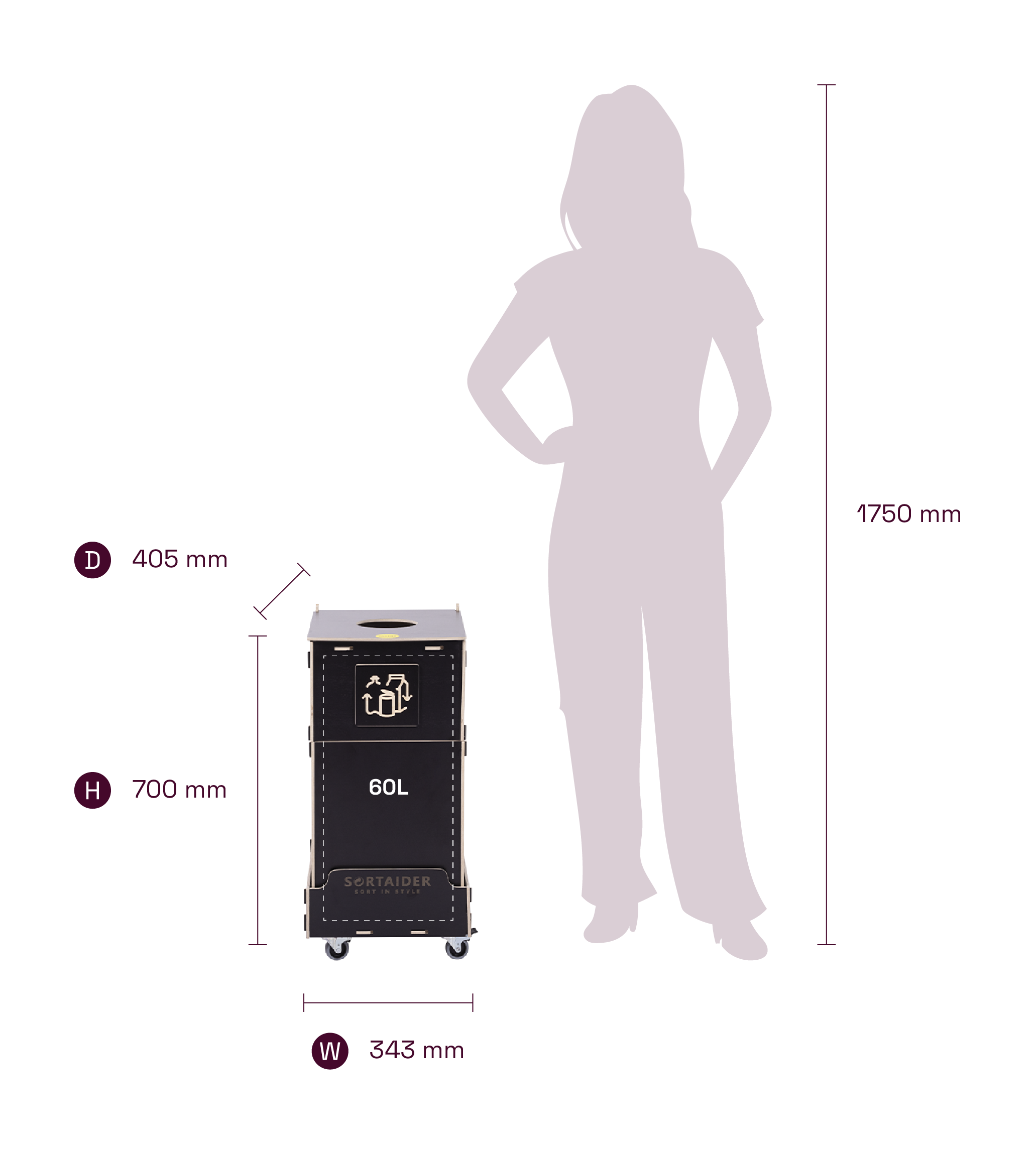 Lukittavilla pyörillä, selkeillä lajittelusymboleilla ja korkealaatuisilla vanerilaatikoilla varustettu laite yhdistää käytännöllisyyden ja pohjoismaisen inspiraation saaneen muotoilun. 9,5 kg:n painoinen Sortaider-tuote säästää noin 10,3 kg CO₂:ta, joten jokainen roskakori on merkityksellinen askel kohti kestävää kehitystä.