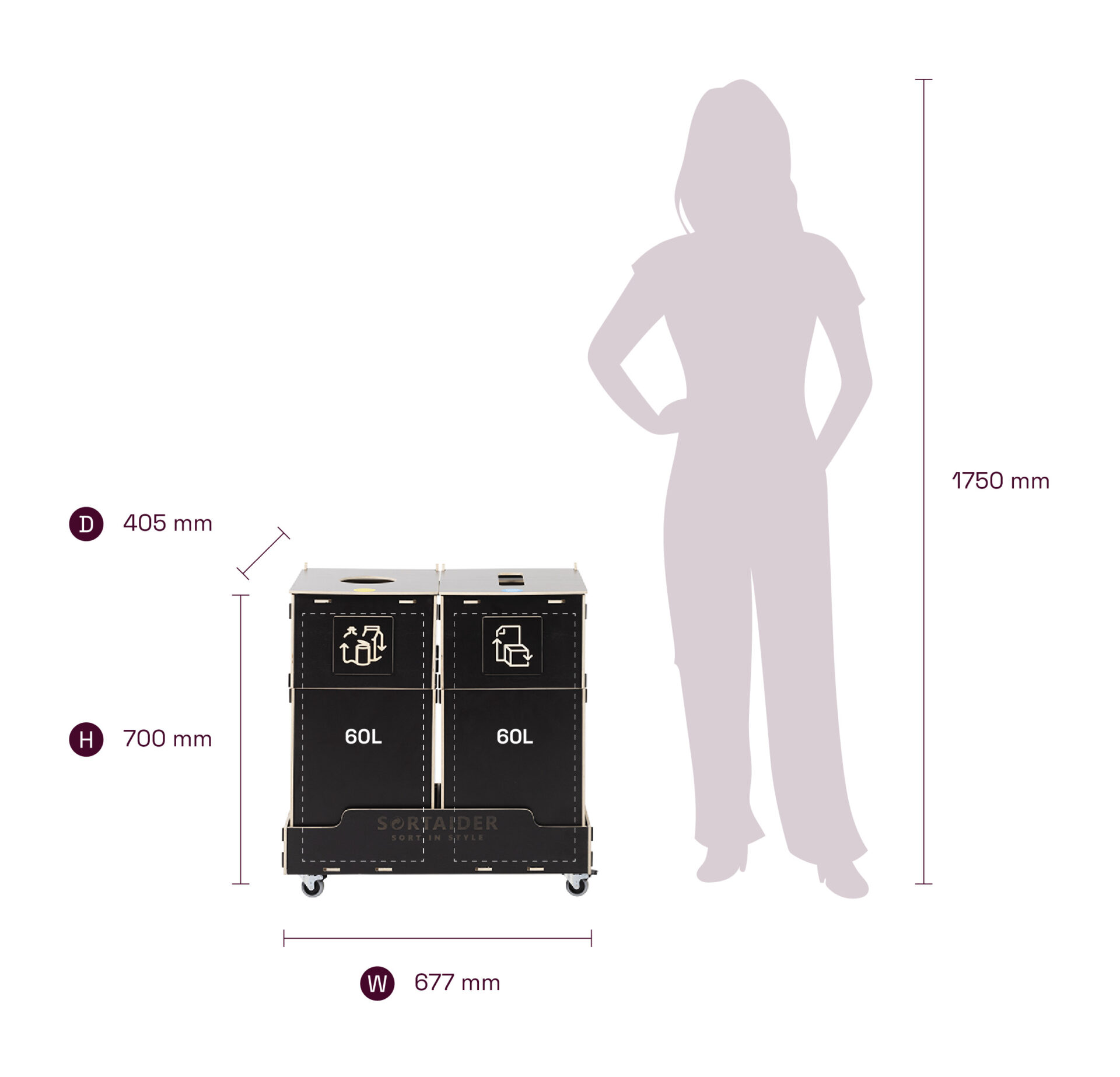 Lukittavilla pyörillä, selkeillä lajittelusymboleilla ja korkealaatuisilla vanerilaatikoilla varustettu lajittelulaatikko yhdistää käytännöllisyyden ja pohjoismaisen inspiraation saaneen muotoilun. 17,6 kg:n painoinen Sortaider-tuote säästää noin 18,4 kg CO₂:ta, joten jokainen laatikko on merkityksellinen askel kohti kestävää kehitystä.