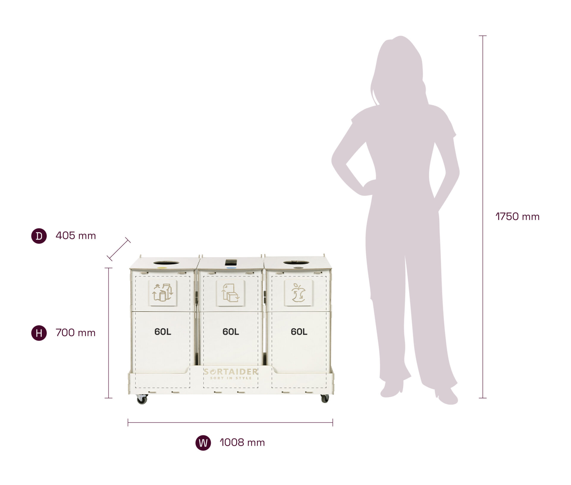 Lukittavilla pyörillä, selkeillä lajittelusymboleilla ja korkealaatuisilla vanerilaatikoilla varustettu laite yhdistää käytännöllisyyden ja pohjoismaisen inspiraation saaneen muotoilun. 25,9 kg:n painoinen Sortaider-tuote säästää noin 26,7 kg CO₂:ta, joten jokainen lajittelulaatikko on merkityksellinen askel kohti kestävää kehitystä.