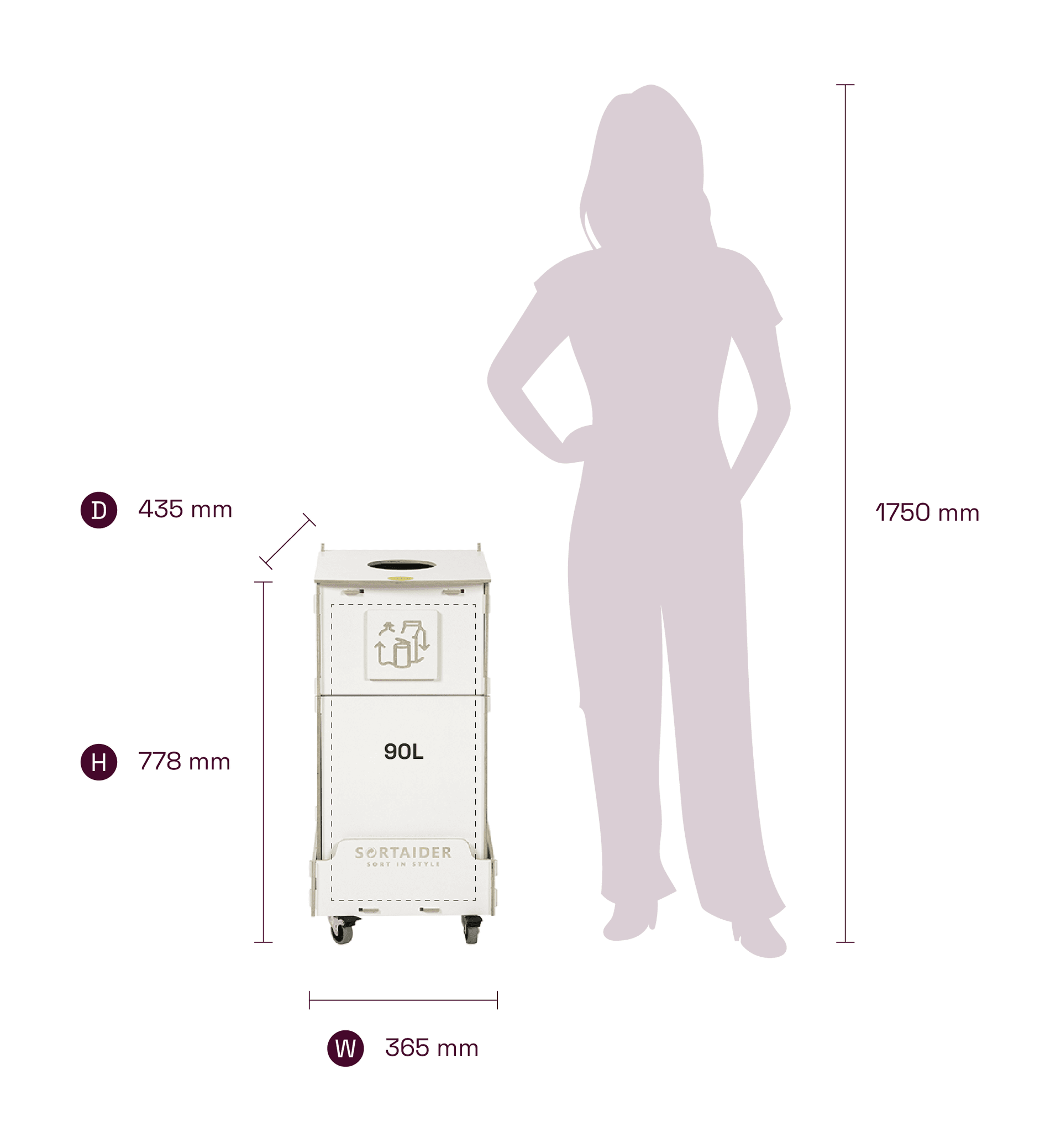 Lukittavilla pyörillä, selkeillä lajittelusymboleilla ja korkealaatuisilla vanerilaatikoilla varustettu laite yhdistää käytännöllisyyden ja pohjoismaisen inspiraation saaneen muotoilun. 10,5 kg:n painoinen Sortaider-tuote säästää noin 11,3 kg CO₂:ta, joten jokainen roskakori on merkityksellinen askel kohti kestävää kehitystä.