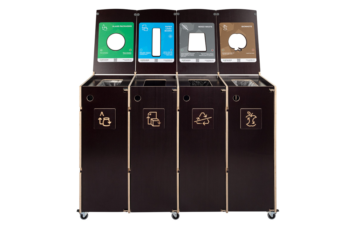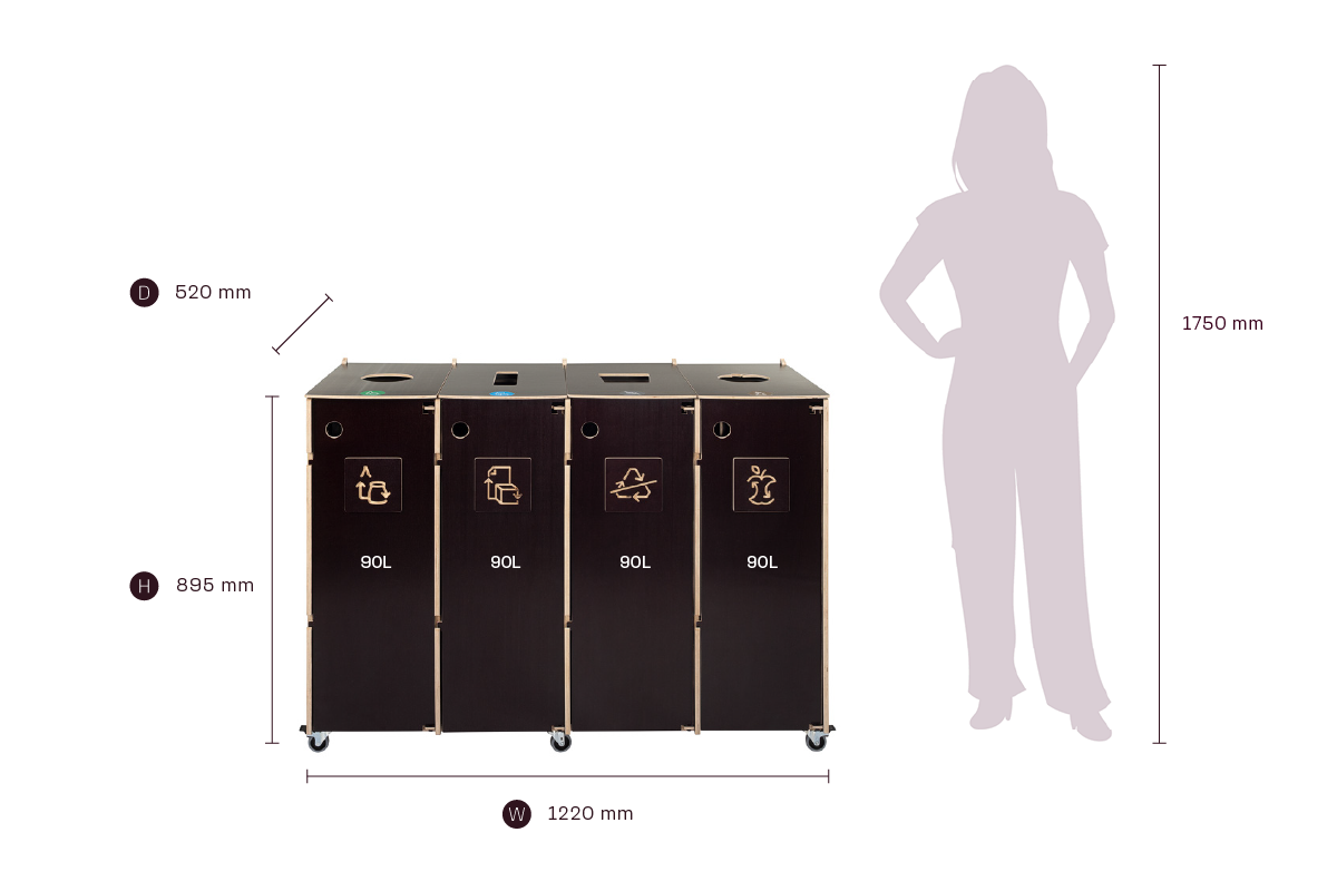 Clear visual guidance ensures correct sorting, while front-opening doors and lockable wheels make daily handling and maintenance simple and efficient. An ideal solution for offices, schools, and public interiors that value design, adaptability, and sustainability.