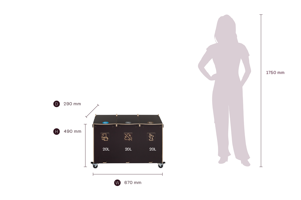 With its compact footprint and efficient capacity, Sorta combines durable plywood materials with functional design, making it a reliable solution for organized and responsible waste management in professional environments.
