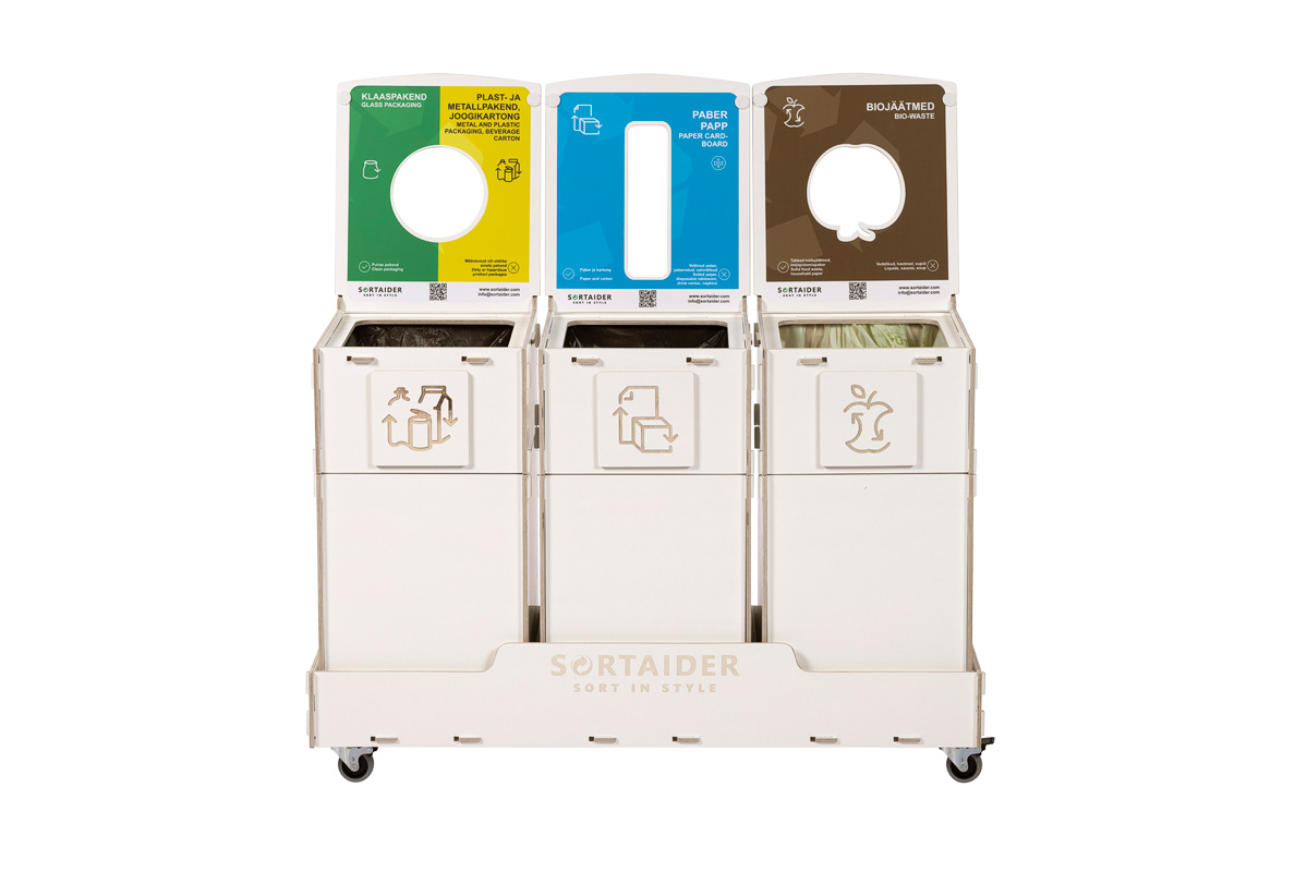 Equipped with lockable wheels, clear sorting symbols, and high-quality plywood bins, it blends practicality with Nordic-inspired design. A 10,4 kg Sortaider product saves approximately 11,2 kg of CO₂, making every bin a meaningful step toward sustainability.