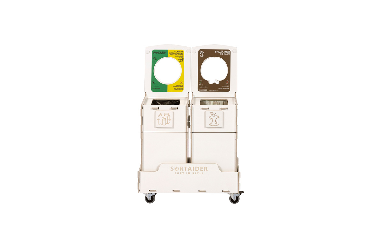 Equipped with lockable wheels, clear sorting symbols, and high-quality plywood bins, it blends practicality with Nordic-inspired design. A 9,5 kg Sortaider product saves approximately 10,3 kg of CO₂, making every bin a meaningful step toward sustainability.