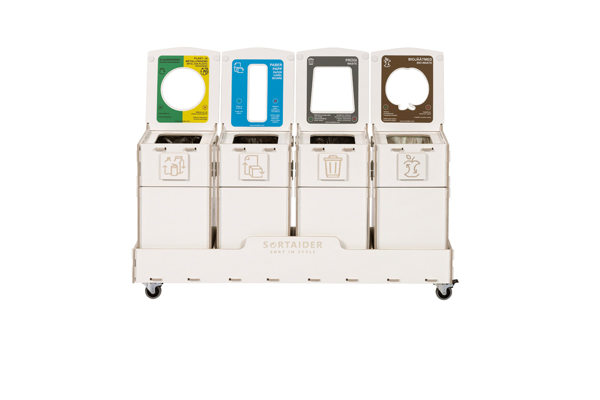Equipped with lockable wheels, clear sorting symbols, and high-quality plywood bins, it blends practicality with Nordic-inspired design. A 18,5 kg Sortaider product saves approximately 19,3 kg of CO₂, making every bin a meaningful step toward sustainability.