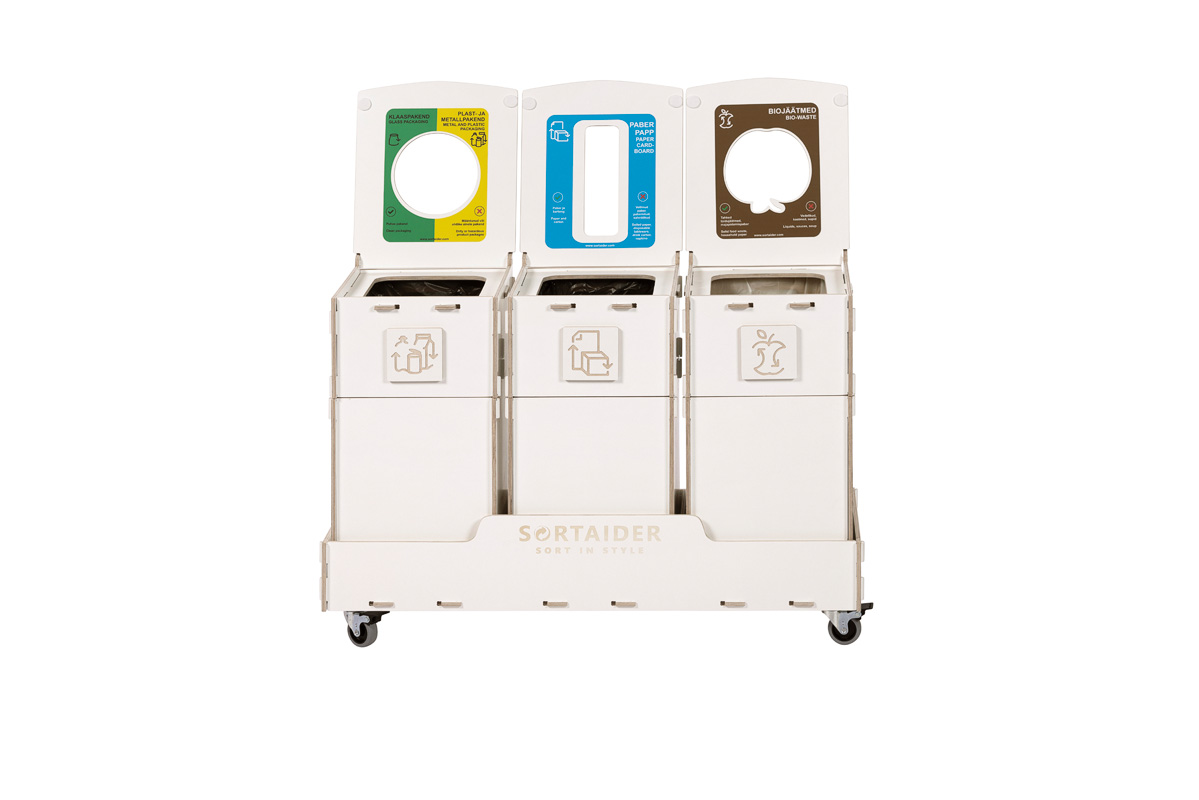 Equipped with lockable wheels, clear sorting symbols, and high-quality plywood bins, it blends practicality with Nordic-inspired design. A 16,6 kg Sortaider product saves approximately 17,4 kg of CO₂, making every bin a meaningful step toward sustainability.