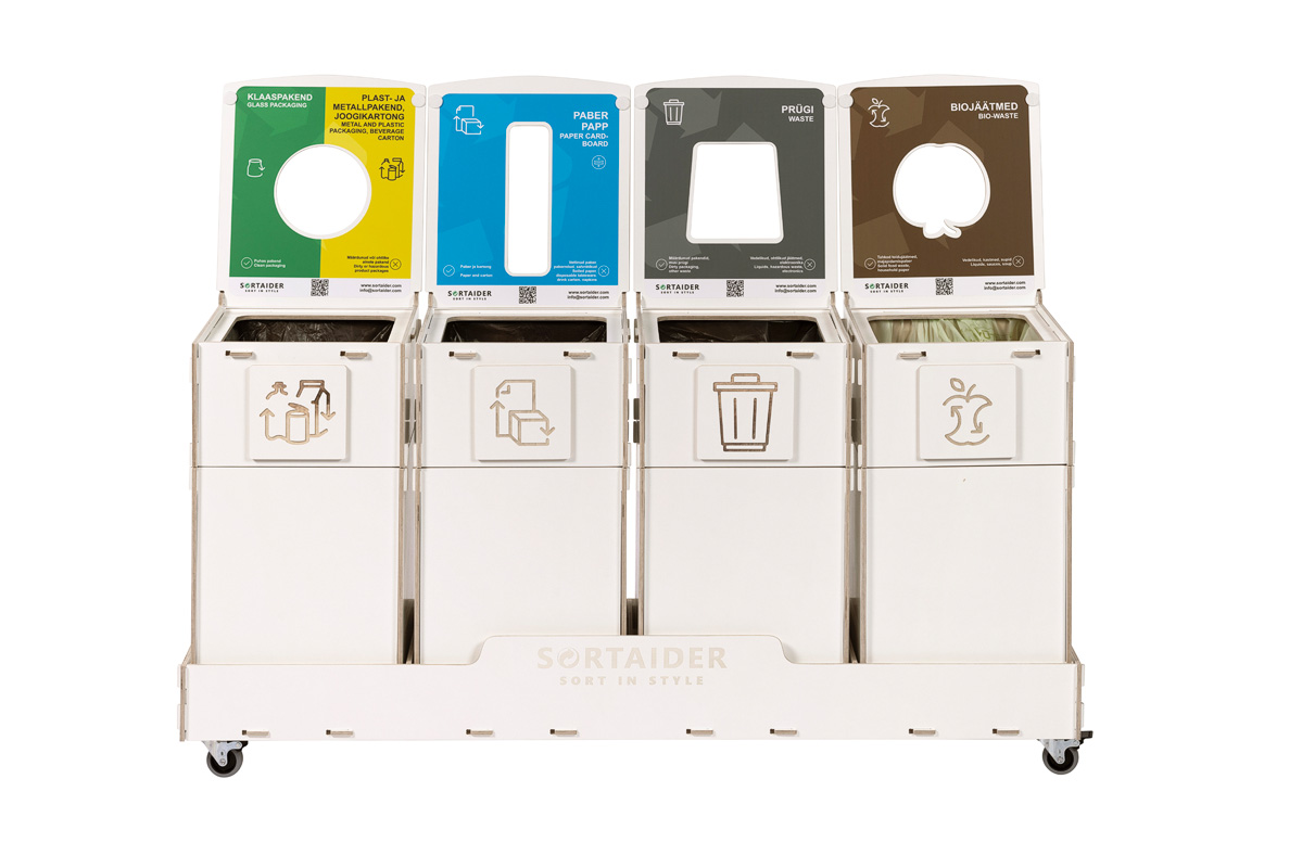 Equipped with lockable wheels, clear sorting symbols, and high-quality plywood bins, it blends practicality with Nordic-inspired design. A 31 kg Sortaider product saves approximately 31,8 kg of CO₂, making every bin a meaningful step toward sustainability.