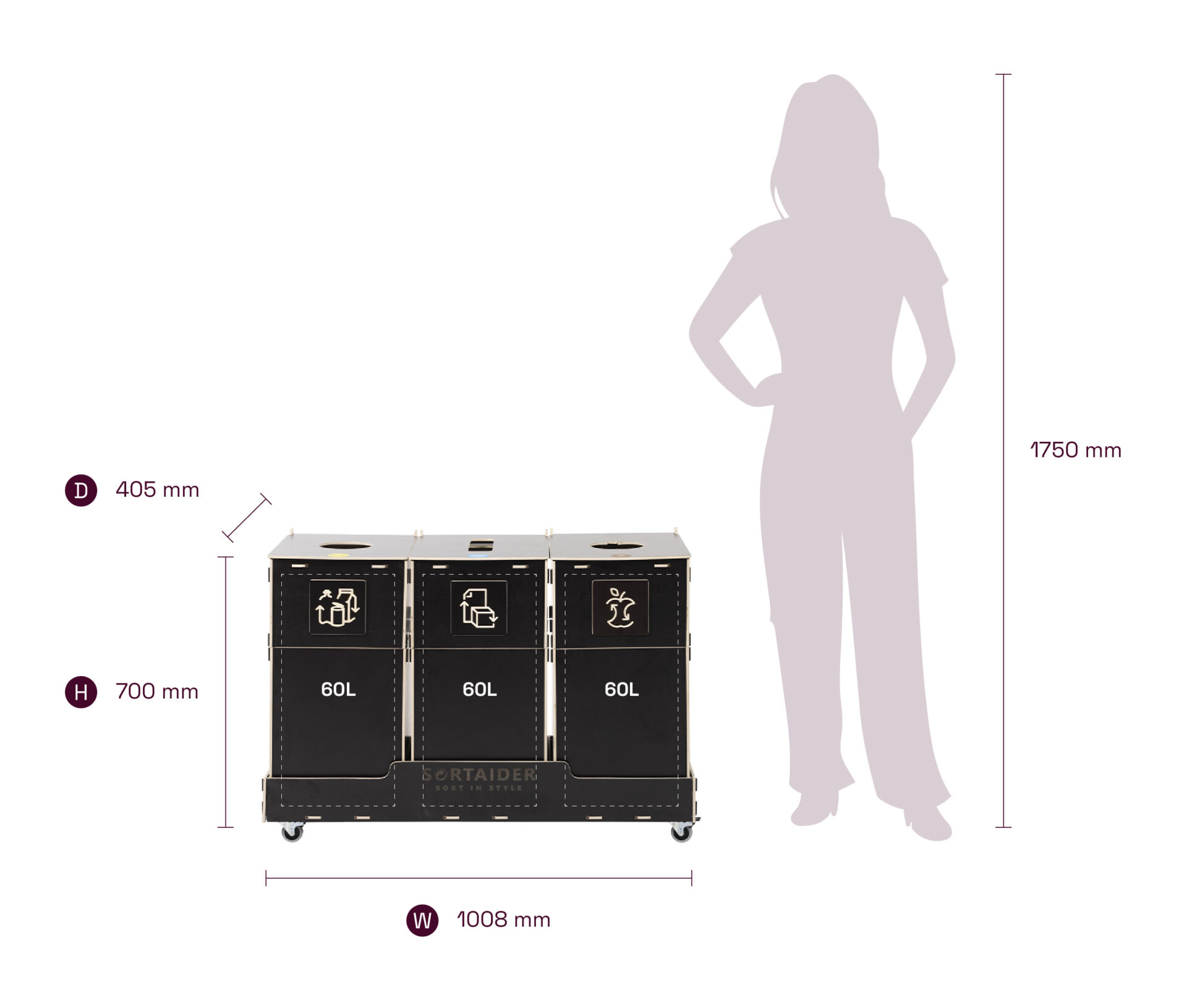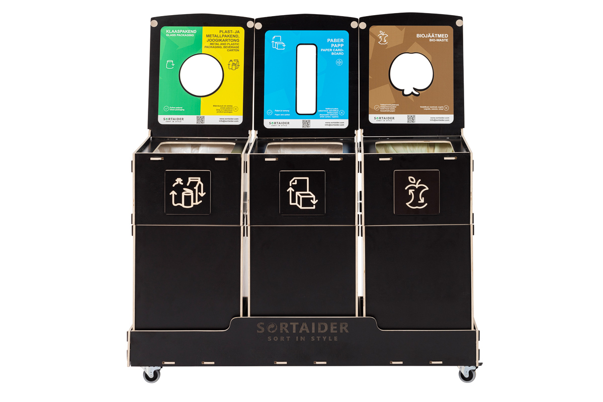 Equipped with lockable wheels, clear sorting symbols, and high-quality plywood bins, it blends practicality with Nordic-inspired design. A 25,9 kg Sortaider product saves approximately 26,7 kg of CO₂, making every bin a meaningful step toward sustainability.